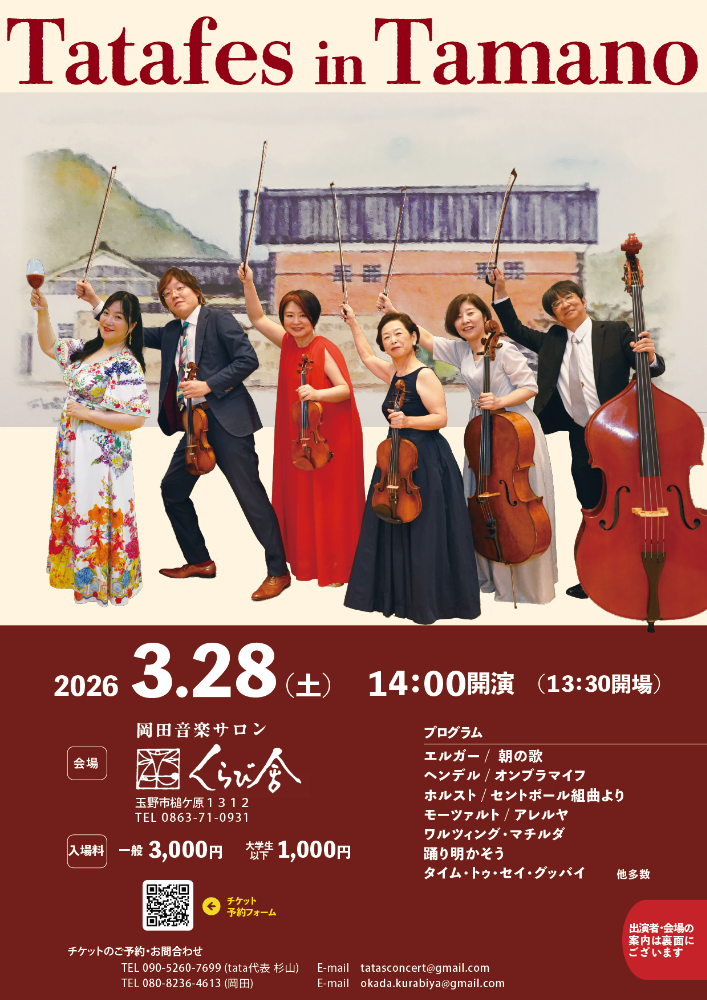 2026年3月28日(土)14:00〜tataフェス in 玉野岡田音楽サロンくらび舎